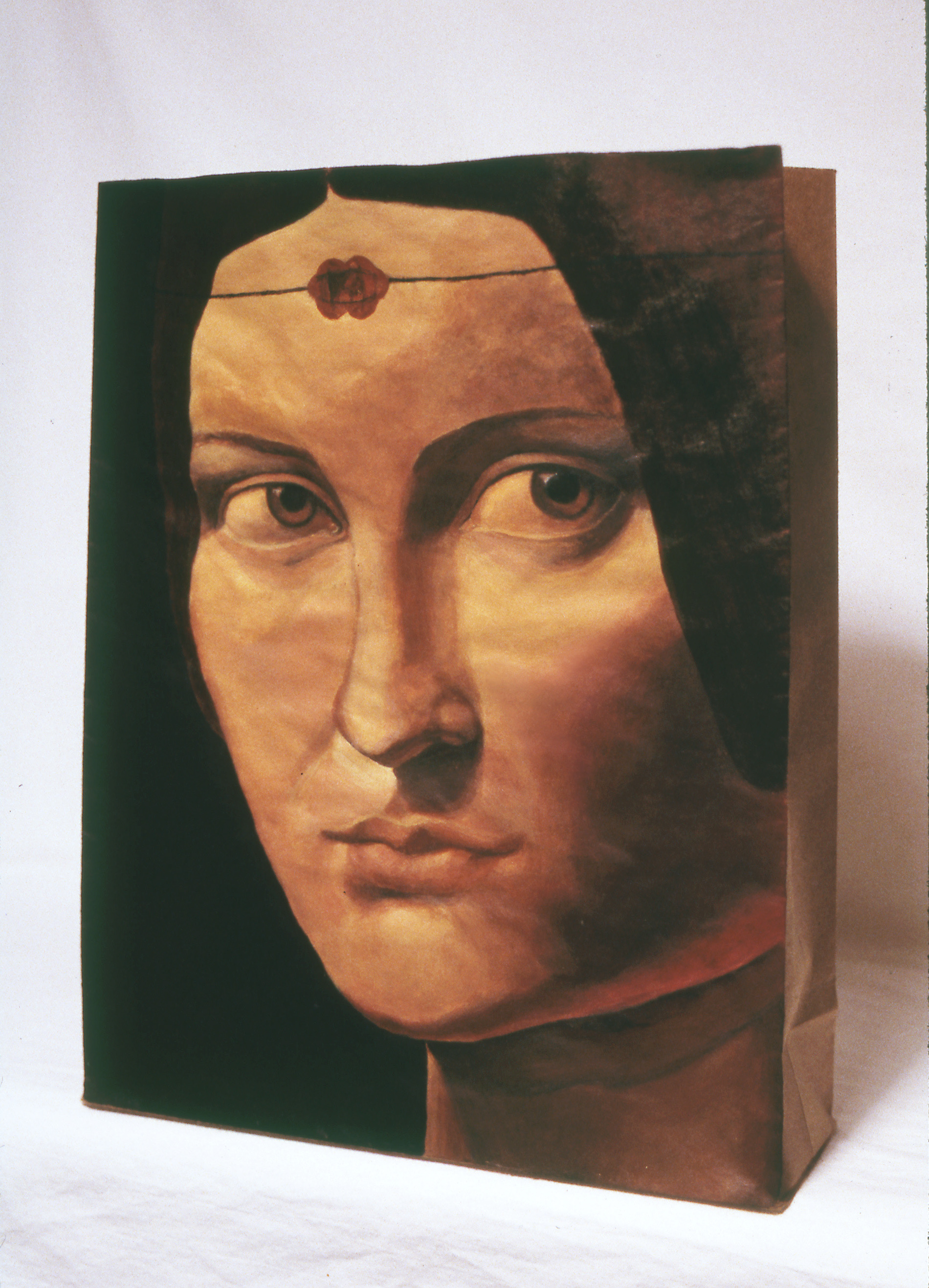 Acrylic on handmade paper bag, 9" x 11.5"